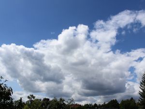 Bei unveränderter Wetterlage gelangt der Fläming heute in einen Streifen mit trockener Luft. Bis zum frühen Nachmittag überwiegt dichter Cumulus und Stratocumulus, doch gegen 15 Uhr klart es im Fläming fast schlagartig auf. In der nicht überbordend warmen Luftmasse steigt die Quecksilbersäule auf 23°C. |