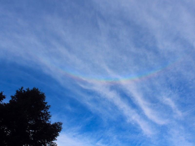 Nach langer Abstinenz zeigte sich am 3. des Monats ein Zirkumzenitalbogen, auch wenn dieser nur schwach sichtbar war. Die Vorboten einer Warmfront trafen in Form von Cirrus und Cirrostratus ein, an den horizontal orientierten Eisplättchen bildete sich der Halo aus. |